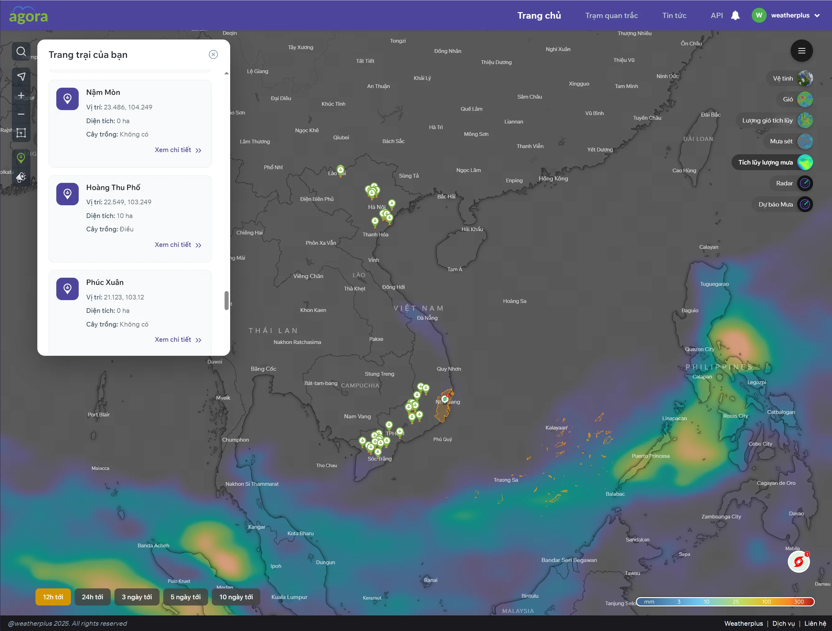 Giải pháp toàn diện với hệ thống trạm thời tiết và nền tảng thời tiết AGORA cho nhiều địa điểm.